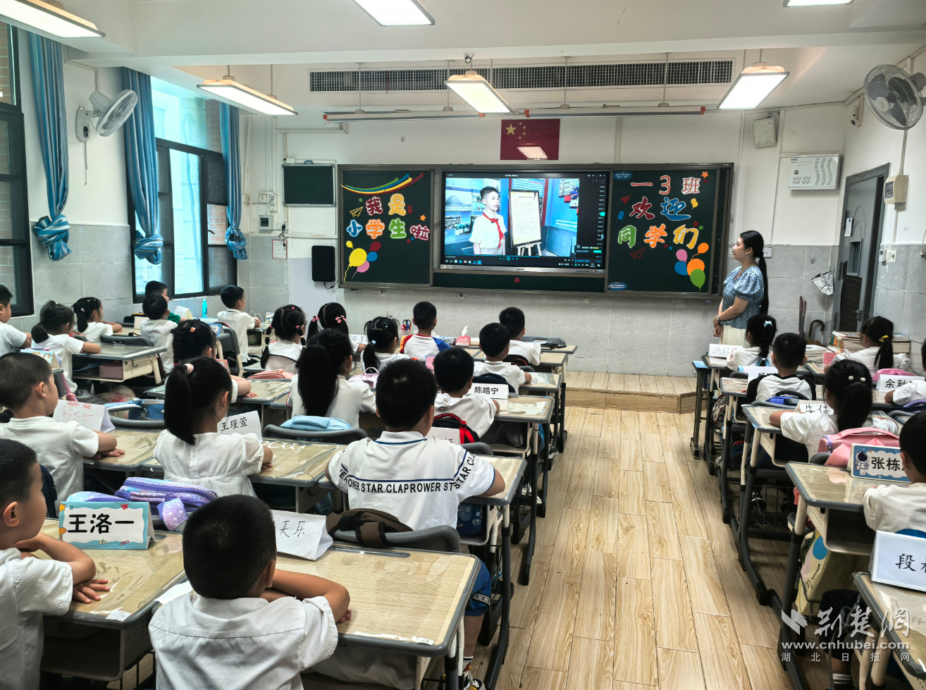 荆楚网(湖北日报网)讯(记者齐一璇 通讯员杨静)夏意渐消,秋声初起,崭新的学期如约而至。9月1日上午,武汉市江岸区鄱阳街小学以“弘扬三大精神 争做时代新人”为主题,举行2025—2026学年第一学期开学典礼,在校园里搭建起满含红色温度与成长期许的“开学舞台”。全体师生在红色精神的浸润中,共同开启新学期的成长旅程。